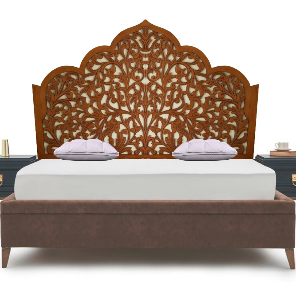 งานแกะสลักไม้สมาร์ทอาร์ต แกะสลักลายใบไม้ด้วยมือ หัวเตียงสไตล์เท็กซัส แผงผนังทาสีน้ำตาล ไม้เอ็นจิเนียร์ตกแต่งบ้านแบบรักษ์โลก