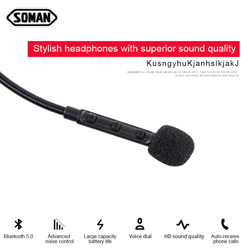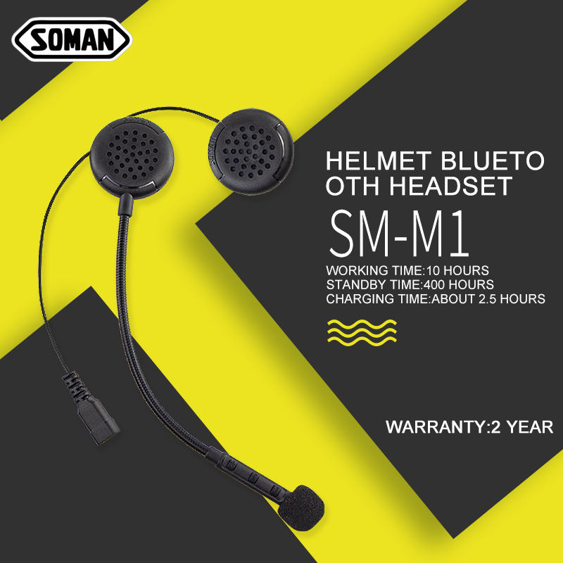 ชุดหูฟังบลูทูธสำหรับมอเตอร์ไซค์ รุ่น SOMAN M1 พร้อมไมโครโฟนในตัว ควบคุมการใช้งานได้ ใช้ได้กับหมวกกันน็อคมอเตอร์ไซค์
