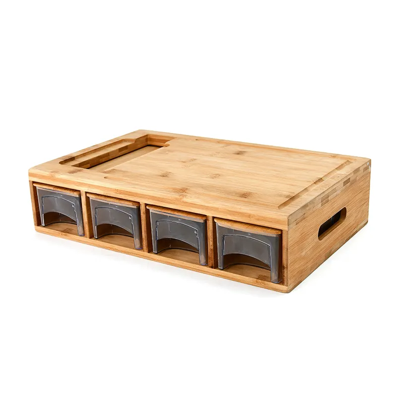 เขียงไม้ไผ่ธรรมชาติพร้อมถาดจัดระเบียบพลาสติก4ชิ้น