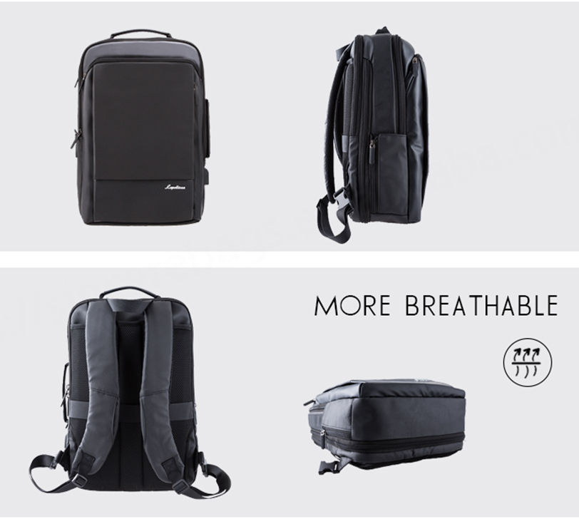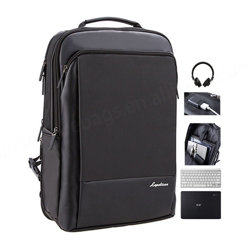 กระเป๋าเป้แล็ปท็อปกันน้ำกันขโมยสีดำอัจฉริยะพร้อมพอร์ต USB วัสดุอ๊อกฟอร์ดปรับแต่งโลโก้ได้สำหรับนักธุรกิจ