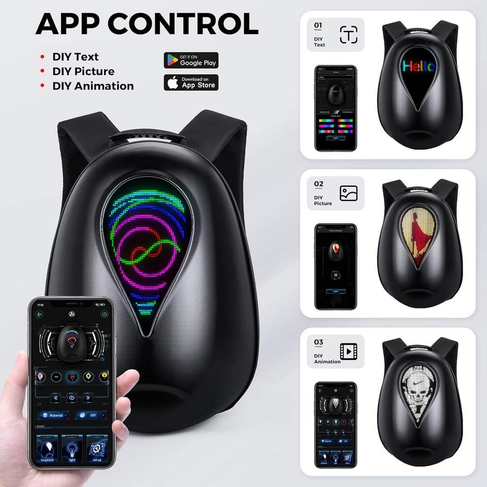 กระเป๋าเป้สะพายหลัง LED ฟันสีฟ้าอัจฉริยะพร้อมแผงป้าย LED สีสันสดใสและกระเป๋า Daypack แล็ปท็อป DIY แบบตั้งโปรแกรมได้