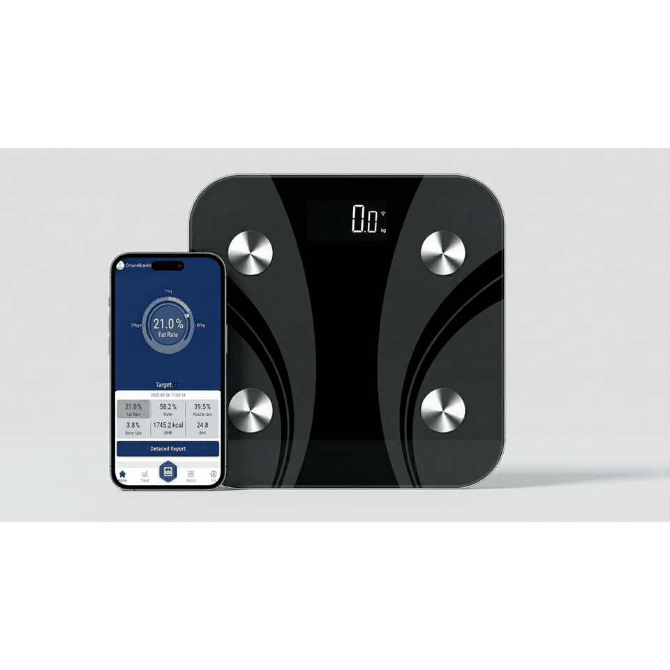 เครื่องชั่งน้ำหนักอัจฉริยะ Smart for Glass รุ่น Black พร้อมจอแสดงผล LED ดิจิตอล วัดค่า BMI และอัตราส่วนองค์ประกอบร่างกาย 25 ค่า รองรับน้ำหนักได้ถึง 180 กก. เหมาะสำหรับใช้ในบ้านและห้องน้ำ
