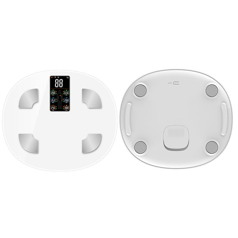 เครื่องชั่งน้ำหนักอัจฉริยะ จอแสดงผลดิจิตอล เซ็นเซอร์ความแม่นยำสูง ใช้พลังงานจากแบตเตอรี่ ขนาด 30x26.5 ซม. พร้อมระบบแจ้งเตือนน้ำหนักเกินและแรงดันต่ำ
