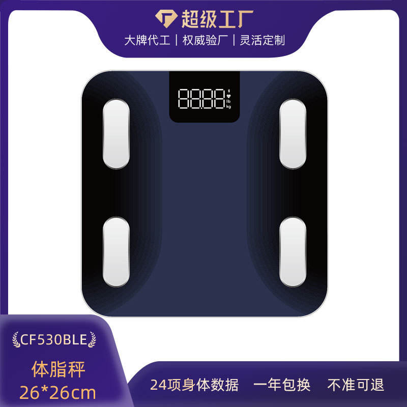 เครื่องชั่งน้ำหนักอัจฉริยะ รูปทรงสี่เหลี่ยมผืนผ้า สีดำ ระบบสัมผัส บลูทูธ เครื่องชั่งอิเล็กทรอนิกส์ เซ็นเซอร์ความแม่นยำสูง ใช้พลังงานจากแบตเตอรี่ รุ่น CF530BLE