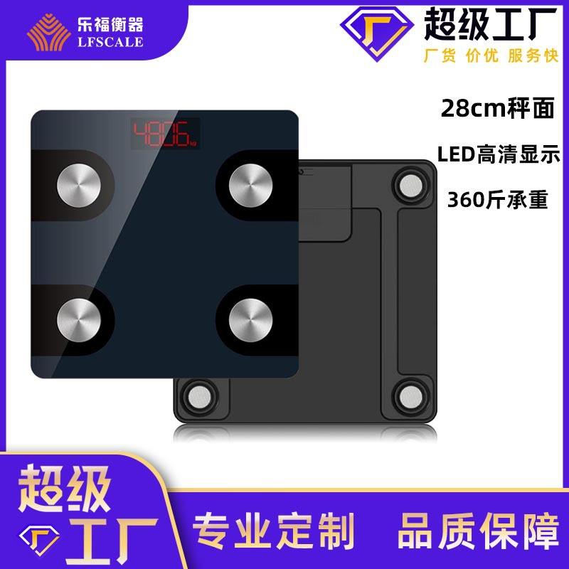 เครื่องชั่งน้ำหนักอัจฉริยะทรงสี่เหลี่ยม สีดำขาว เชื่อมต่อบลูทูธ พร้อมเซ็นเซอร์ความแม่นยำสูง ใช้พลังงานจากแบตเตอรี่ สำหรับใช้ในบ้านและเชิงพาณิชย์