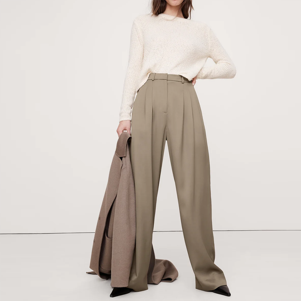 กางเกงขาบานทรงหลวมดีไซน์สีตามสั่งสำหรับผู้หญิงเสื้อผ้าลำลองอัจฉริยะใช้ระบายอากาศได้ดีเป็นมิตรกับสิ่งแวดล้อม