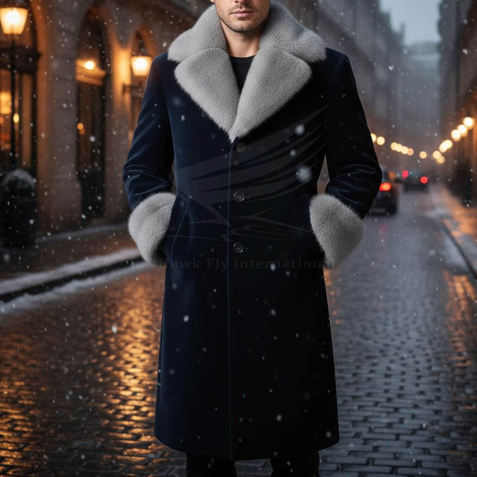 เสื้อโค้ทขนสัตว์ผู้ชายสไตล์ลำลองแบบสมาร์ท สำหรับใส่ทำงานหรือใส่ในชีวิตประจำวัน แต่งขอบด้วยขนสัตว์ เนื้อผ้าระบายอากาศได้ดี รับสกรีนโลโก้และเสื้อโค้ทสำหรับธุรกิจ ขั้นต่ำในการสั่งซื้อน้อย
