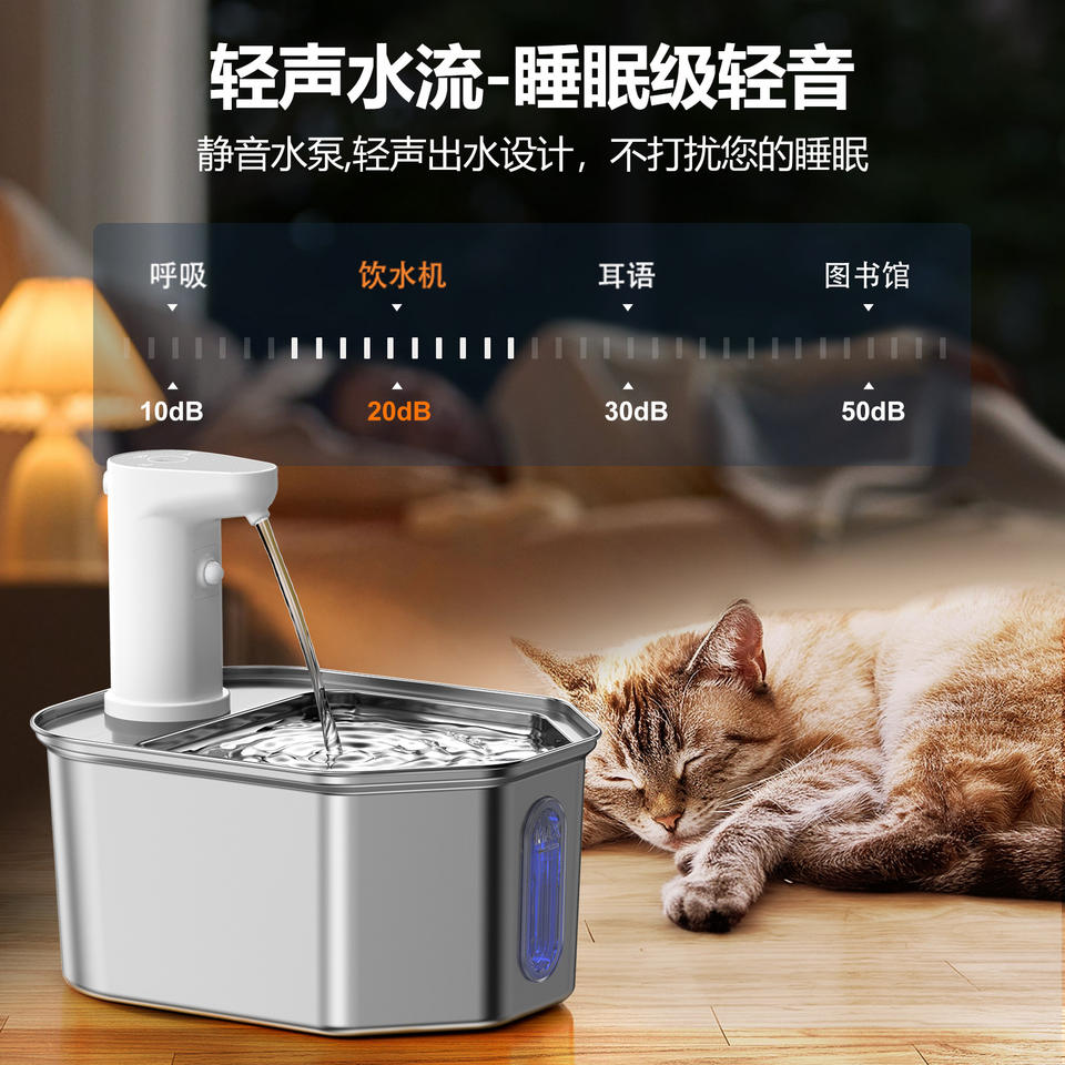 น้ำพุแมวอัจฉริยะ 304 สแตนเลสสตีล ความจุขนาดใหญ่ เซ็นเซอร์ไร้สาย สำหรับสุนัขและแมว