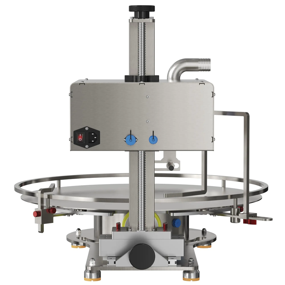 เครื่องปั๊มเกียร์ควบคุมด้วย PLC สำหรับของเหลวข้นหนืดแบบกึ่งอัตโนมัติ พร้อมแท่นหมุนแบบ Heavy Duty ยี่ห้อ Smart Choice สำหรับขวดแก้ว
