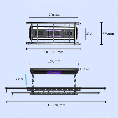 ราวตากเสื้อผ้าอัจฉริยะรูปแบบการยกอัตโนมัติแถบไฟฆ่าเชื้อและฆ่าเชื้อการออกแบบให้ประหยัดพื้นที่