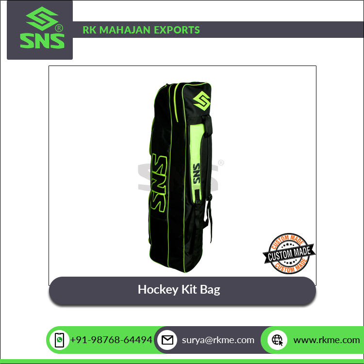 กระเป๋าใส่อุปกรณ์ฮอกกี้แบบประหยัด สีดำ สายสะพายคู่ มีช่องใส่ของหลายช่อง จากผู้ผลิตในอินเดีย