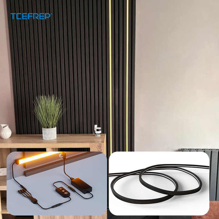 ไฟ LED แถบสีดำแบบควบคุมอัจฉริยะสำหรับแผงผนังแบบ Slat Wall แสงนีออนเฟล็กซ์สีขาวอบอุ่น 3000K สำหรับตกแต่งภายในบ้าน