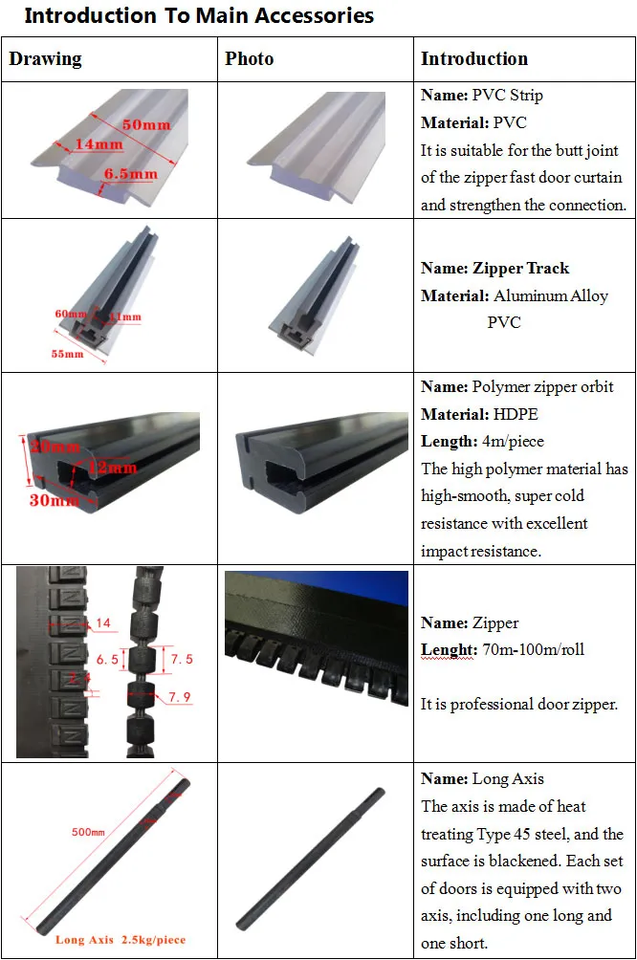 ชื่อผลิตภัณฑ์:ซิปประตูพีวีซีความเร็วสูง