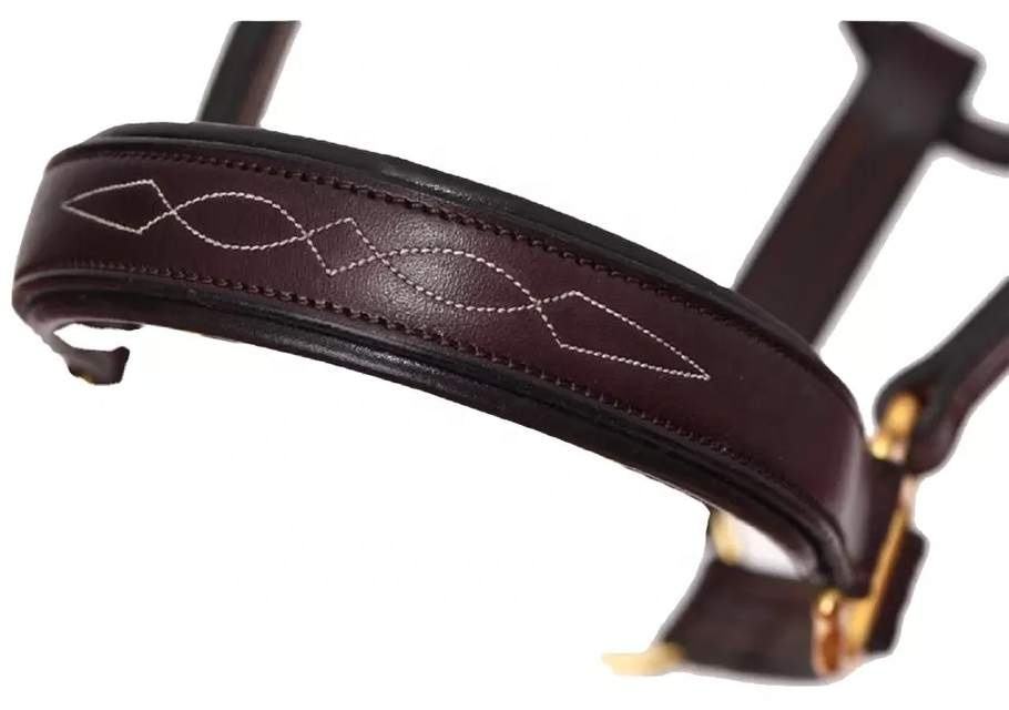 สายจูงม้าแบบอังกฤษสีขาว ดีไซน์สวยงาม บุด้วยหนังนุ่ม พร้อมอุปกรณ์ทองเหลืองอย่างดี ปรับแต่งสายจูงได้
