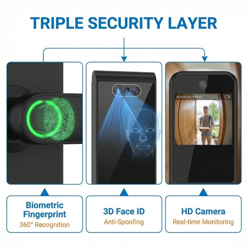 สมาร์ทล็อคประตู TTLock/แอป Tuya ระบบไบโอเมตริกซ์ สแกนลายนิ้วมือ สแกนใบหน้า กล้องวงจรปิด รหัสผ่าน กุญแจ สมาร์ทการ์ด ระบบจัดเก็บข้อมูลบนคลาวด์ สมาร์ทล็อค