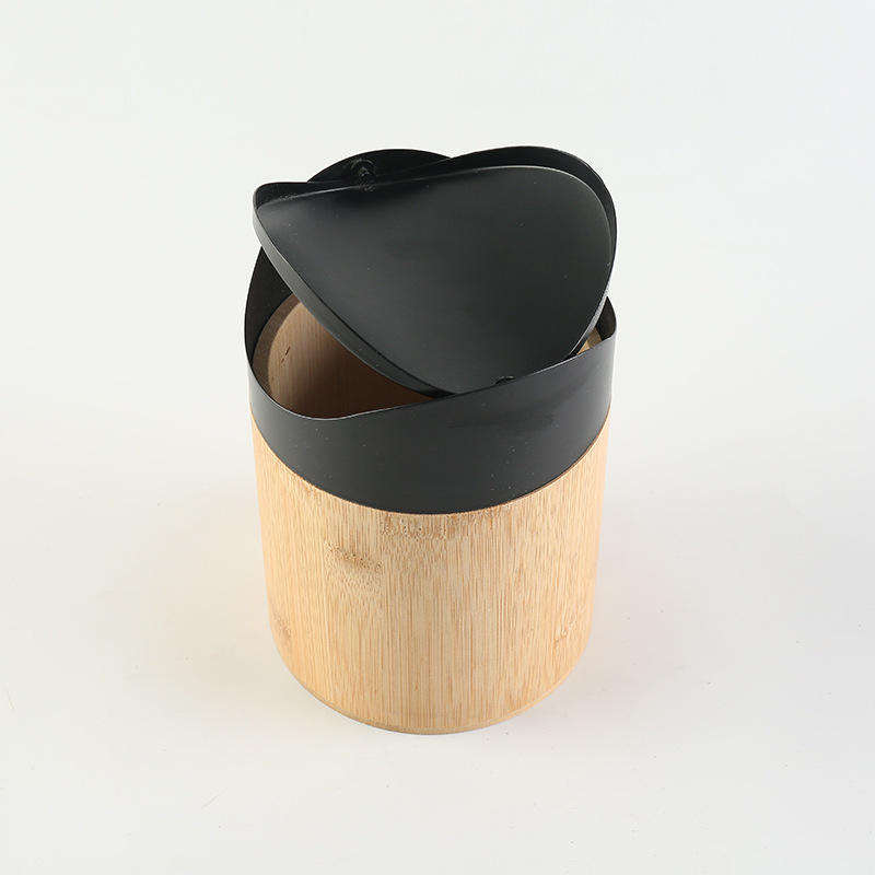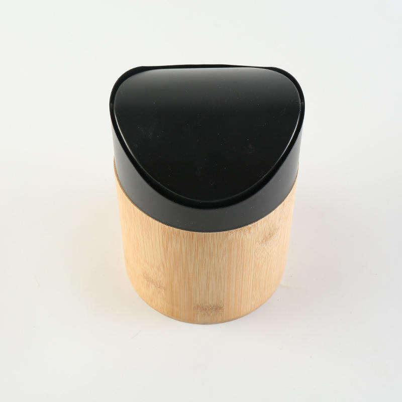 ถังขยะทรงกระบอกไม้ไผ่สมัยใหม่ ดีไซน์รักษ์โลก ฝาเปิดแบบแกว่ง สำหรับห้องครัว ห้องนอน สำนักงาน ห้องนั่งเล่น พร้อมถังไม้แอช