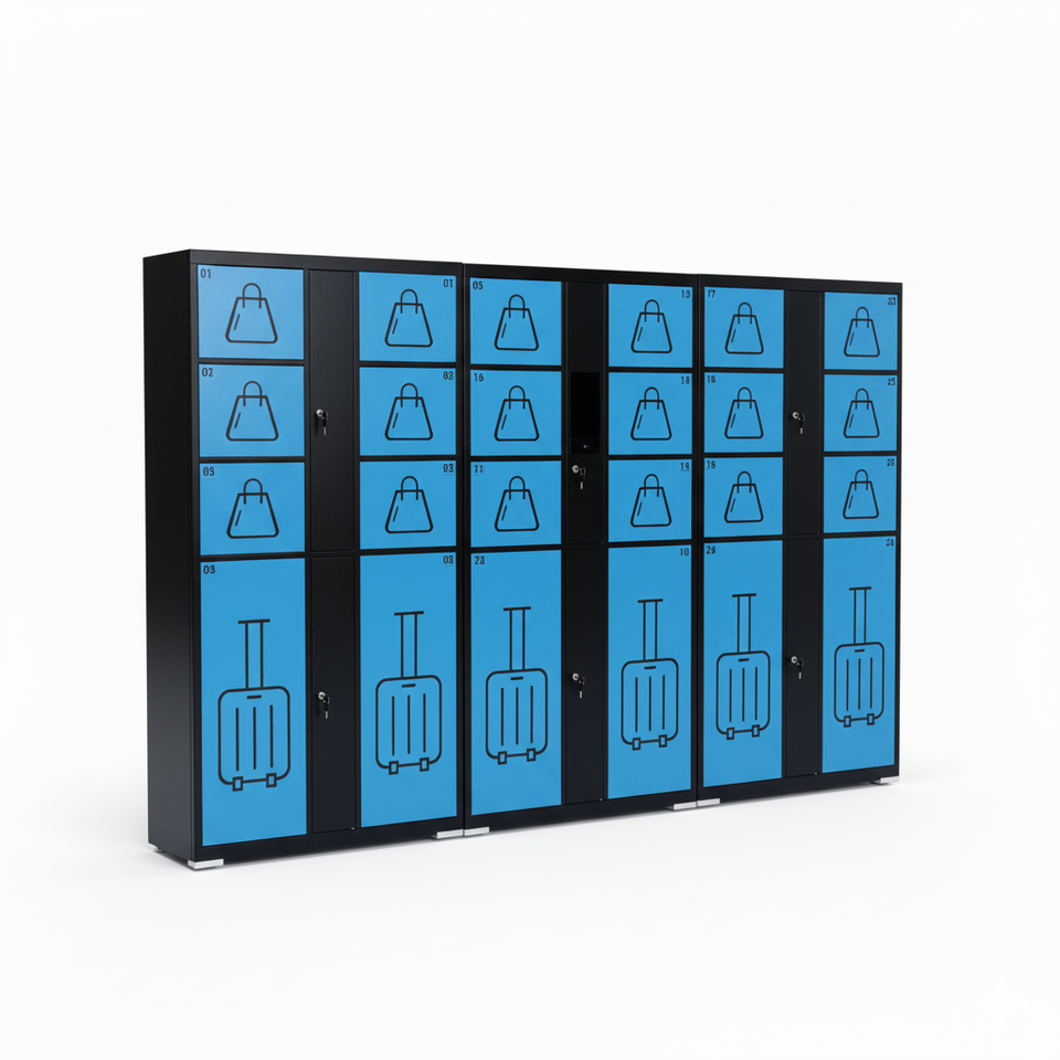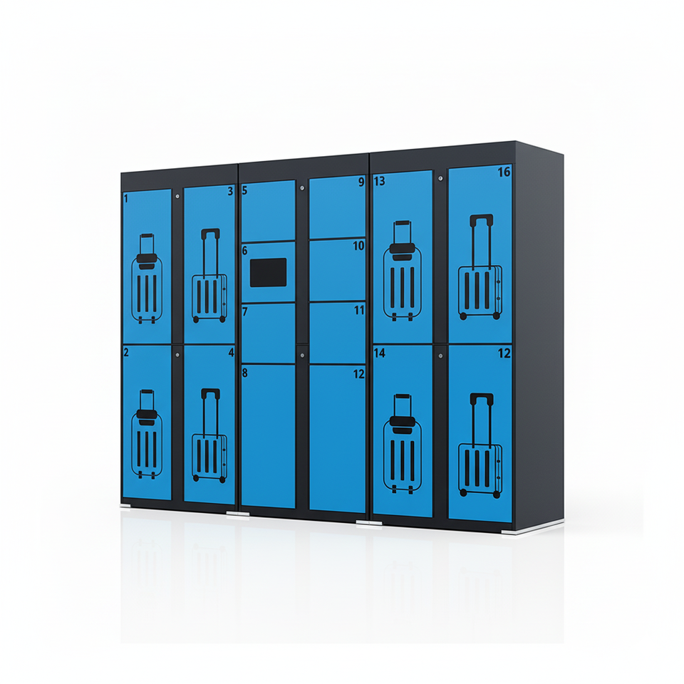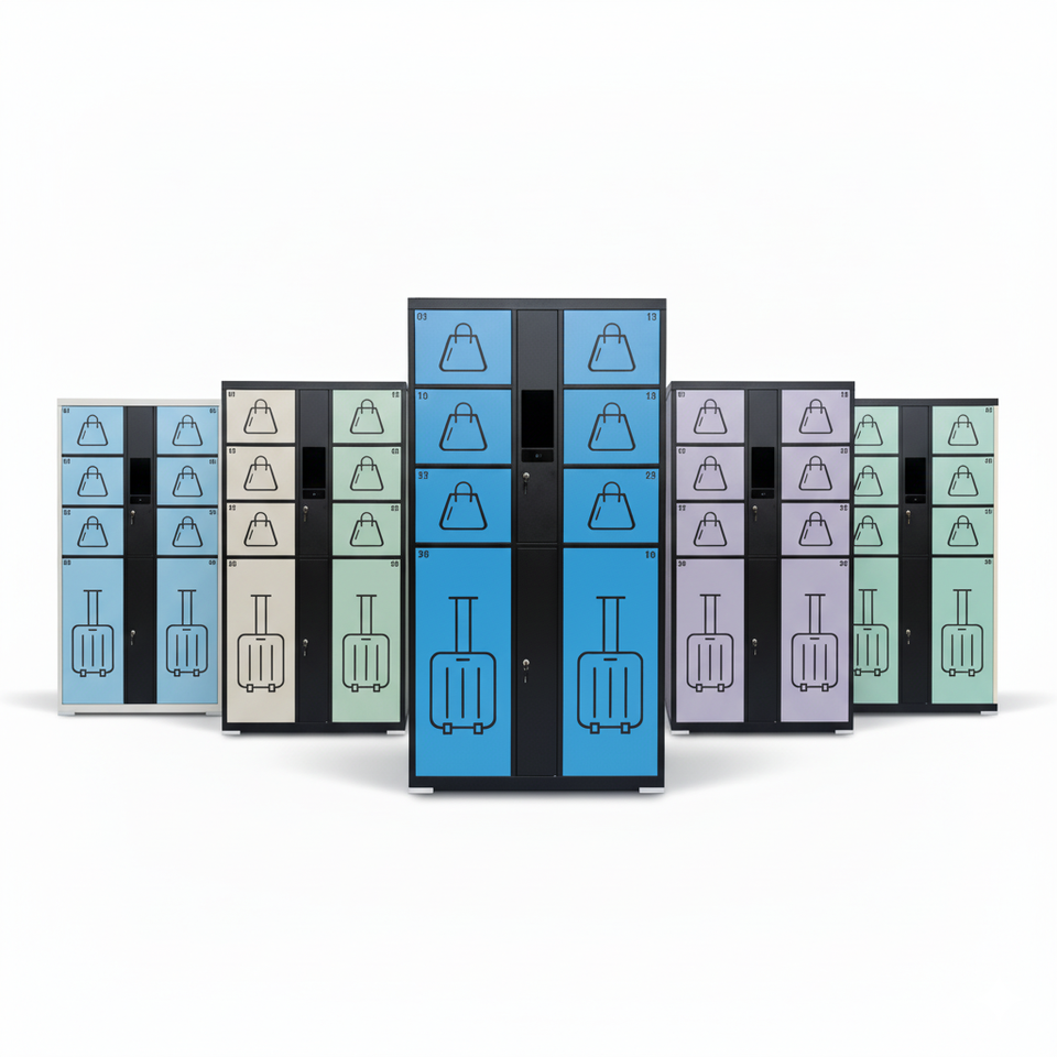 ตู้ล็อกเกอร์อัจฉริยะสำหรับกระเป๋าเดินทาง ทำจากโลหะ เหมาะสำหรับโรงยิม มหาวิทยาลัย และโรงแรม พร้อมระบบจดจำใบหน้าและการเข้าถึงด้วยคิวอาร์โค้ด