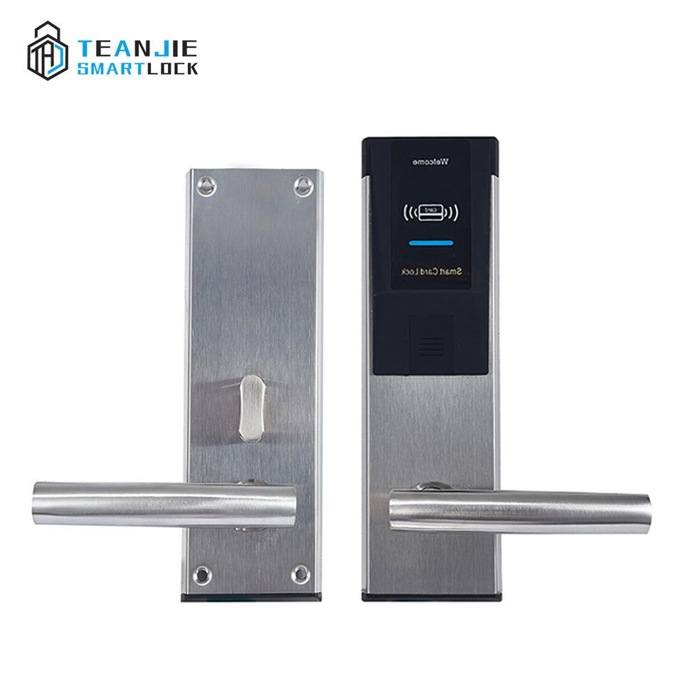 ระบบล็อคประตูโรงแรมอัจฉริยะแบบอิเล็กทรอนิกส์ ทำจากสแตนเลส พร้อมระบบปลดล็อคด้วยการ์ด/กุญแจแบบกลไก สำหรับประตูไม้หนา >35 มม.