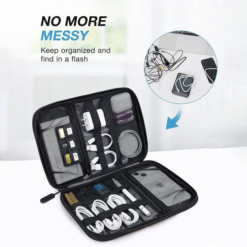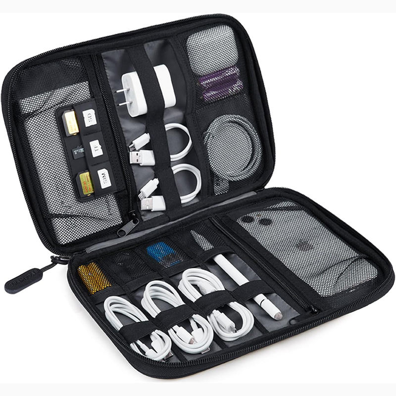 กระเป๋าจัดระเบียบอุปกรณ์อิเล็กทรอนิกส์สำหรับเดินทาง ใส่สายชาร์จ แบตสำรอง การ์ด SD สายเคเบิล สีดำ
