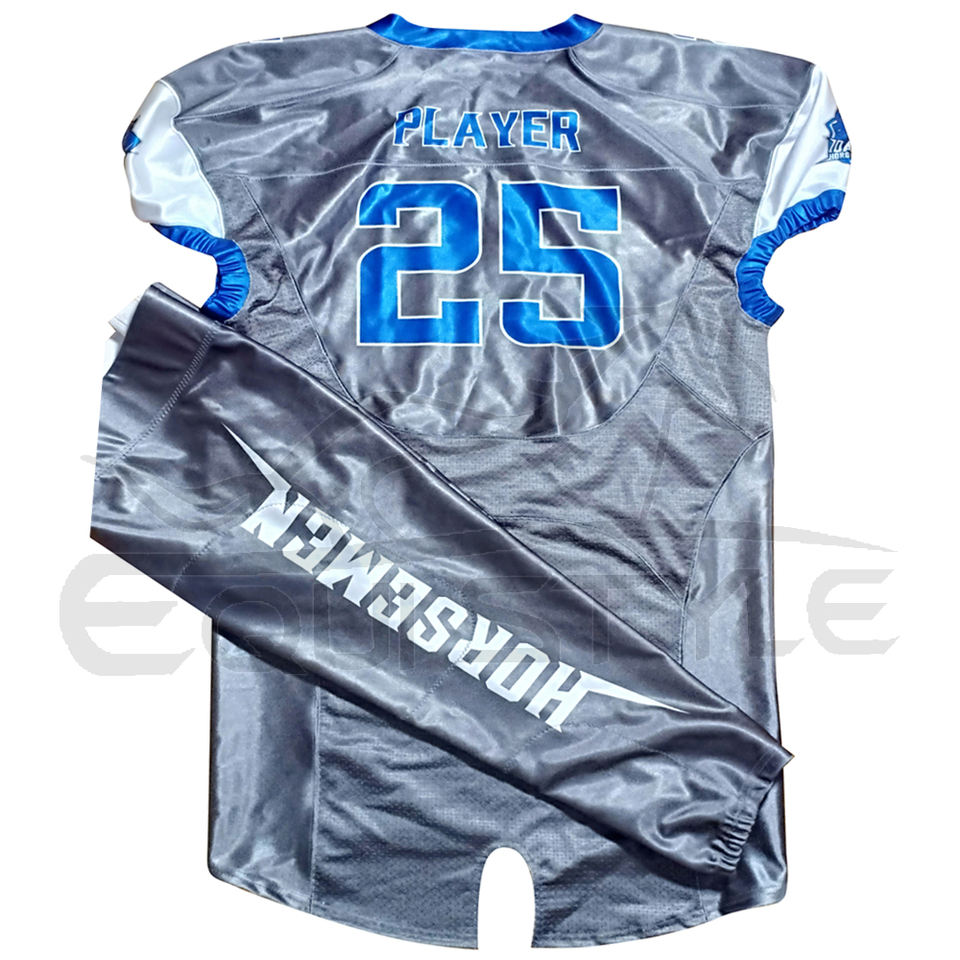 เสื้อเจอร์ซีย์เล่นกีฬาระบายอากาศเข้ารูปแบบอัจฉริยะชุดพิมพ์ลายซับลิเมชันสไตล์อเมริกันฟุตบอลงานตามสั่ง