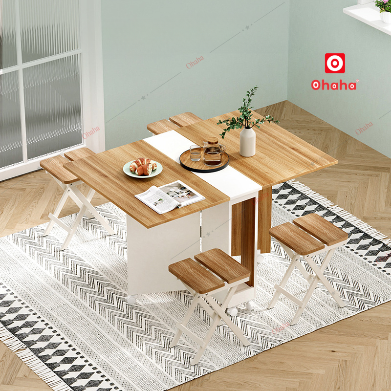 Smart Folding Dining Table Set with Chairs and Lockable Wheels Space-Saving Design for Small Homes Lockable Wheels for Mobility