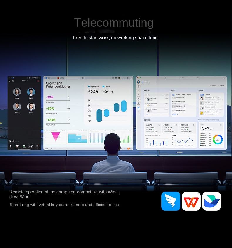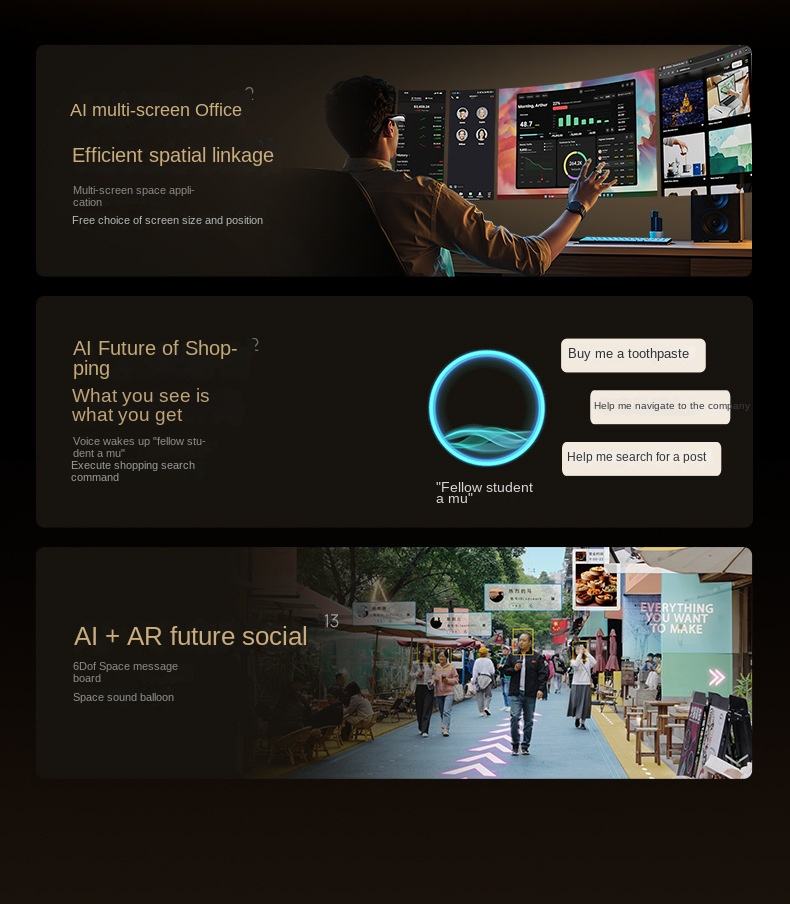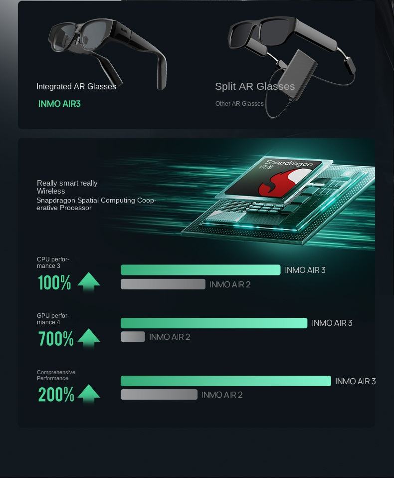 แว่นตาอัจฉริยะพร้อมหน้าจอ OLED ในตัวเพิ่มมุมมองภาพสมจริงสำหรับการนำทางและการควบคุมด้วยเสียงสำหรับการเล่นเกมภาพยนตร์