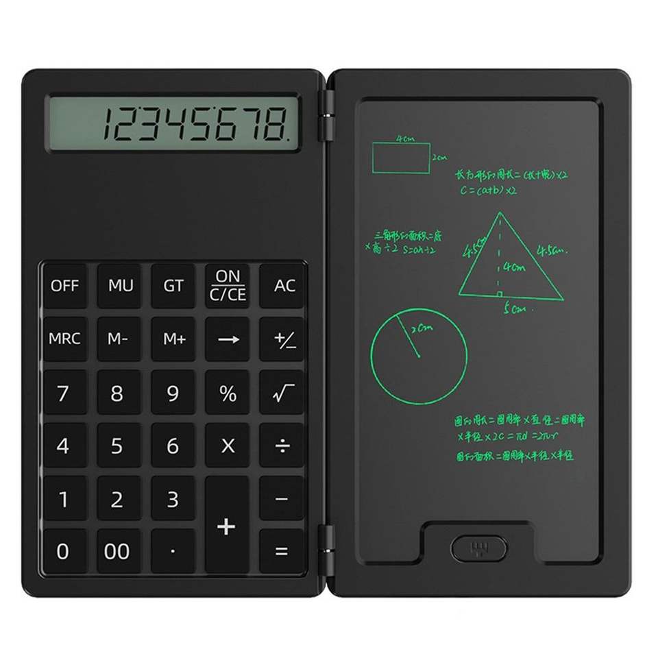 เครื่องคิดเลขวิทยาศาสตร์12หลักแบบพับได้ขนาดเล็กสำหรับบ้านอัจฉริยะพร้อมแผ่นจดบันทึก LCD ขนาด5นิ้วพร้อมสไตลัสสำหรับนักเรียนออฟฟิศ