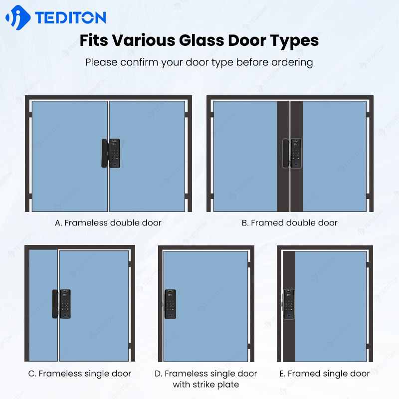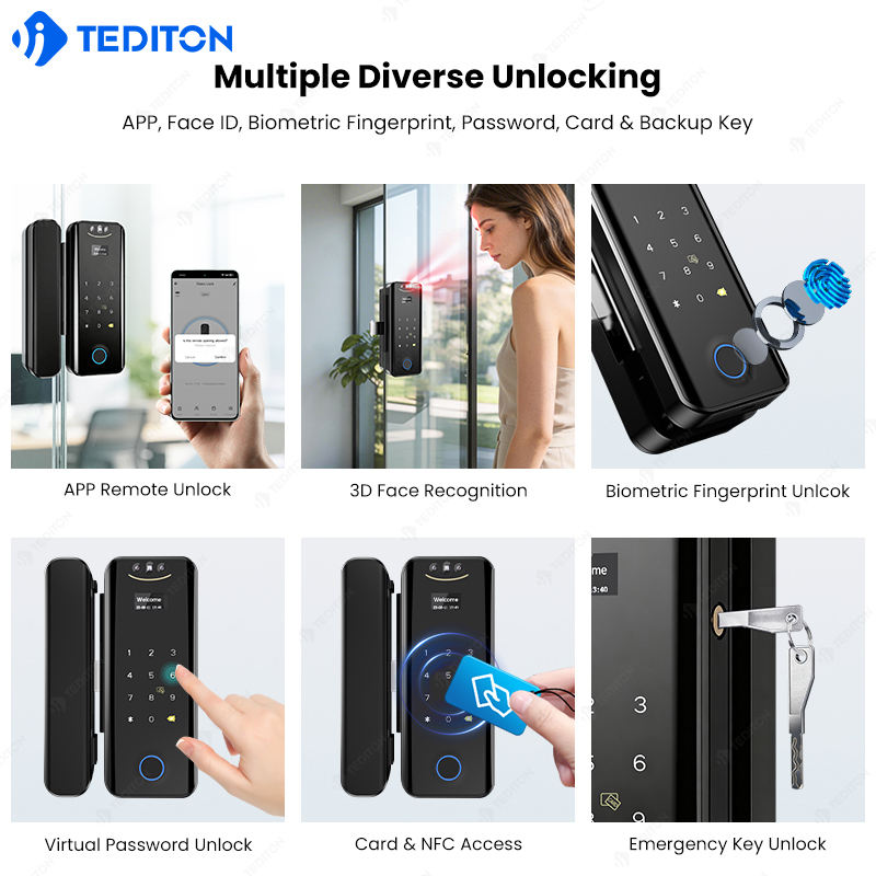 ล็อคอัจฉริยะประตูกระจก Tuya สำหรับบ้านสำนักงานโรงแรมรหัสผ่านแบบเลื่อนเข้าได้