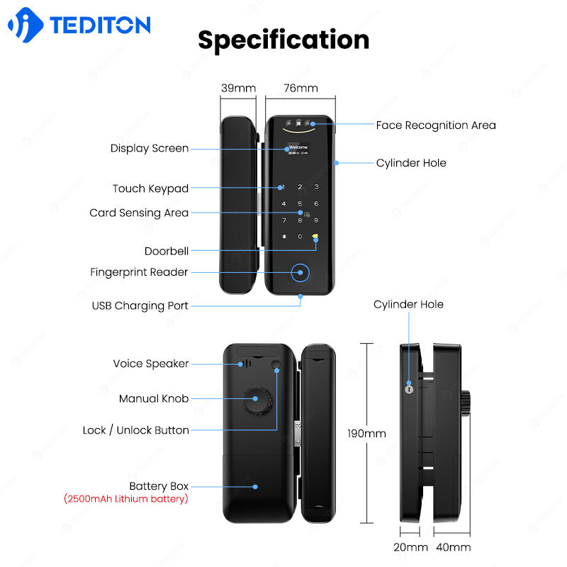 ชื่อผลิตภัณฑ์:ล็อคประตูหน้าบานกระจกอัจฉริยะ