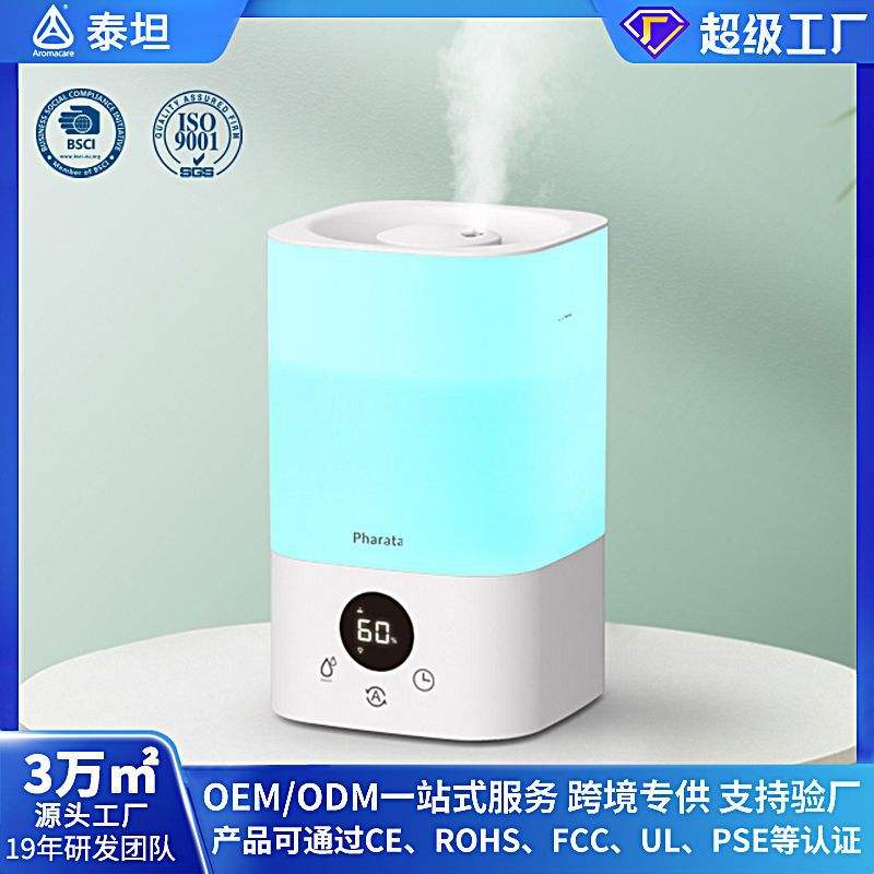 เครื่องเพิ่มความชื้นอัลตราโซนิกสำหรับบ้านอัจฉริยะ สีขาว ความจุขนาดใหญ่ 6 ลิตร พร้อมหน้าจอดิจิตอลและตัวตั้งเวลา สำหรับใช้ในห้องนอน