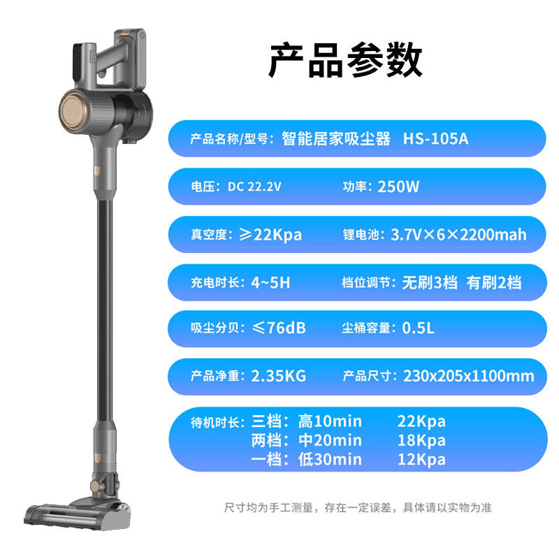 เครื่องดูดฝุ่นอัจฉริยะสำหรับบ้าน รุ่น HS 105A กำลังไฟ 250 วัตต์ แบบไร้สาย ดูดฝุ่นได้แรง 22 กิโลปาสคาล พร้อมแบตเตอรี่ 2200 มิลลิแอมป์