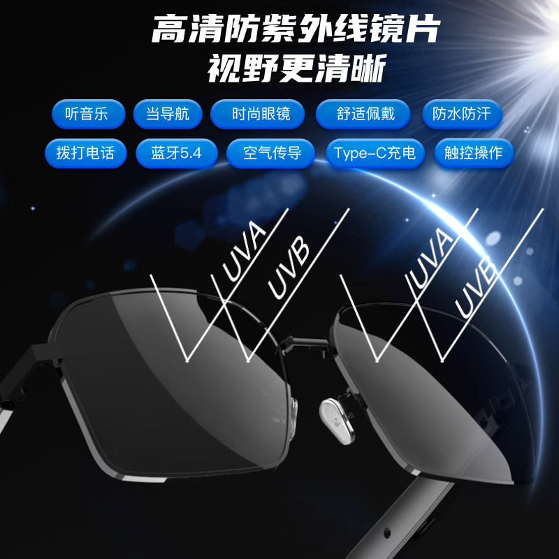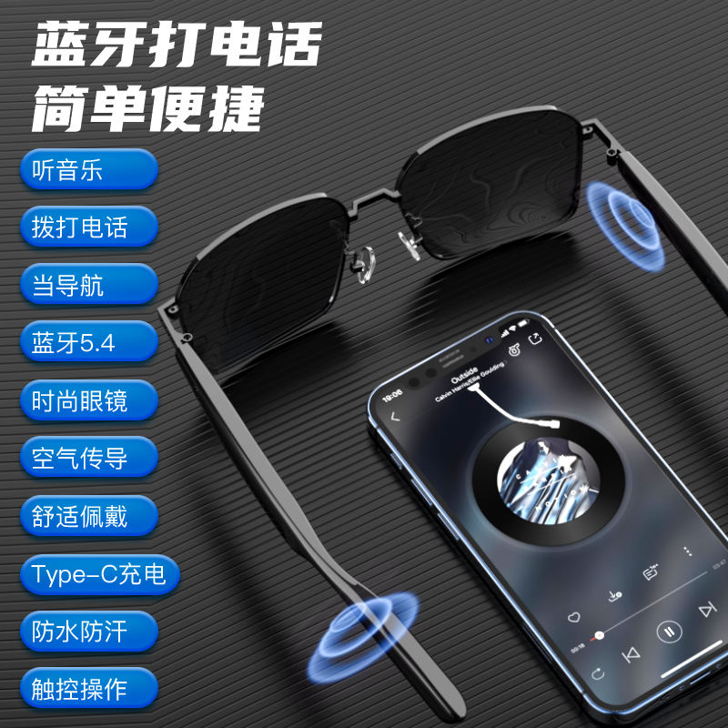 แว่นกันแดด SG12 AI แปลภาษาอัจฉริยะ, แว่นตาฟังเพลงไร้สายกลางแจ้งไร้สายแว่นตาแปลภาษาแบบสวม