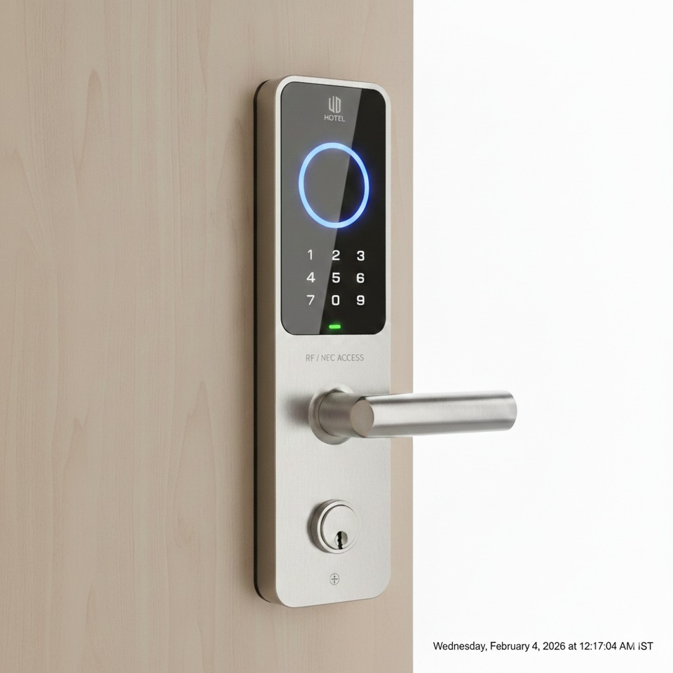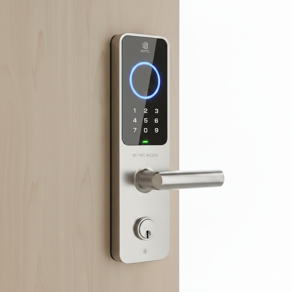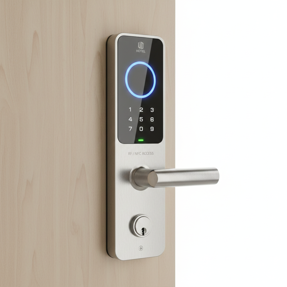 ระบบล็อคประตูโรงแรมอัจฉริยะพร้อมบัตร RFID และควบคุมผ่านแอปมือถือ NFC โครงสร้างโลหะ ทนทาน อุปกรณ์เสริมสำหรับร้านเสริมสวย