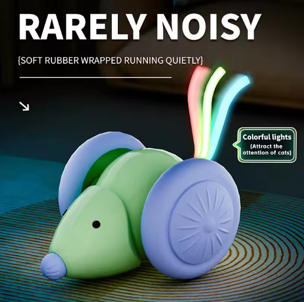 Smart Interactive Eco-Friendly Cartoon Feather Cat Toys Electric USB Rechargeable Cat Mouse Toy with LED Lights