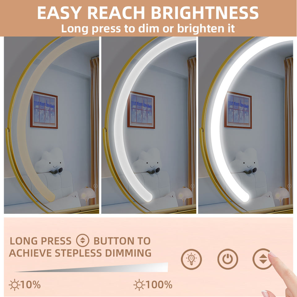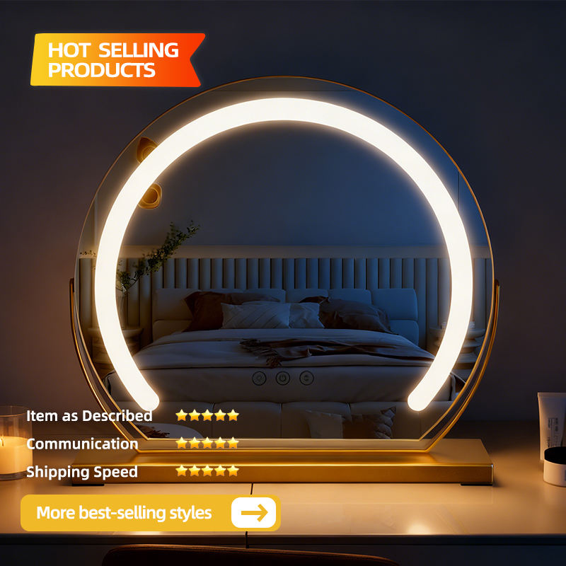 กระจกแต่งหน้าแบบตั้งโต๊ะ LED อัจฉริยะ ดีไซน์ทันสมัย วัสดุโลหะและกระจก เหมาะสำหรับหอพักและห้องนอน สามารถปรับแต่งรูปทรงและโลโก้ได้