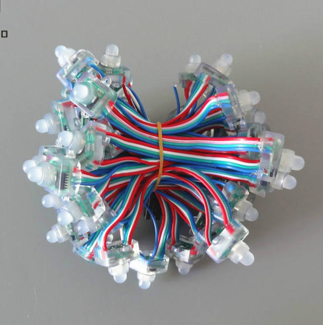 Smart Led Pixel Light 5V 12V 0.3W 12มม.,พิกเซล RGB แบบสี่เหลี่ยมโหนด WS2801 50ชิ้นต่อสายไฟ