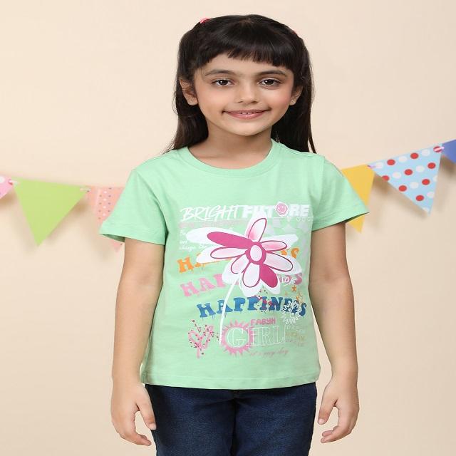 Smart Look 100% Cotton Girls round Neck T-Shirt Available in Different Printing Methods Handpicked for Sale