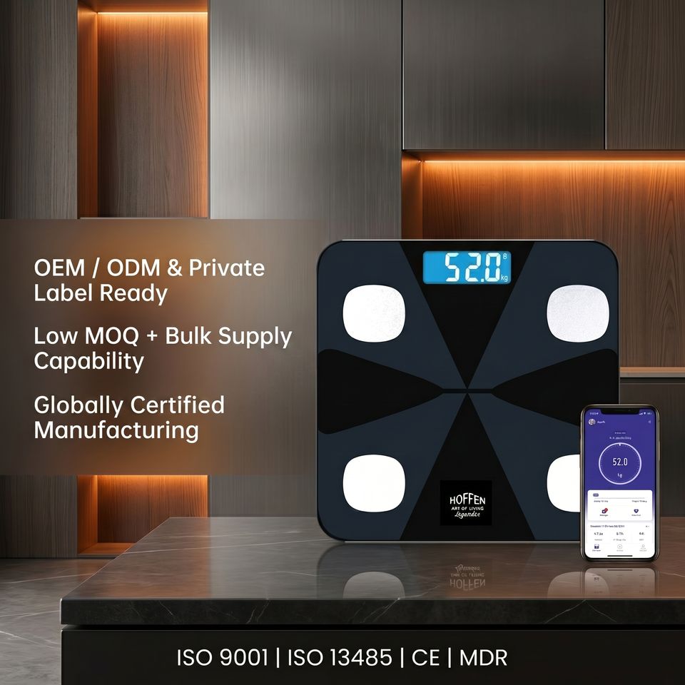 เครื่องวัดไขมันในร่างกายระบบดิจิทัลที่มีความแม่นยำสูงในห้องน้ำพร้อมโหมดอัจฉริยะ BMI สำหรับการจัดการไขมันด้วยวัสดุกระจกแอป