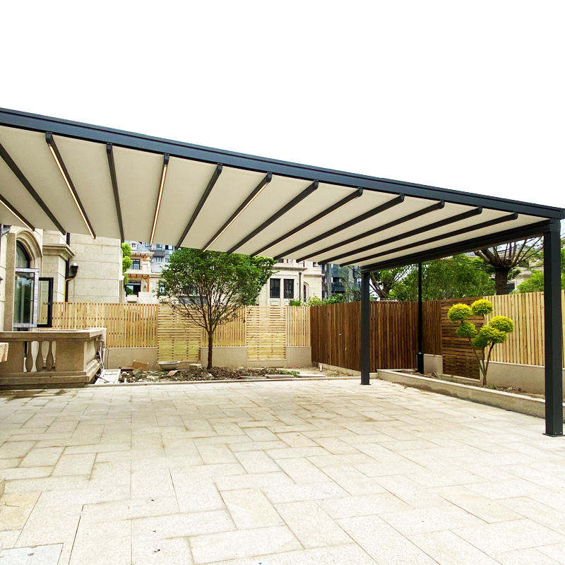 หลังคาแบบพับได้ติดมอเตอร์อัจฉริยะพร้อมที่บังแดดสำหรับระเบียงกลางแจ้ง