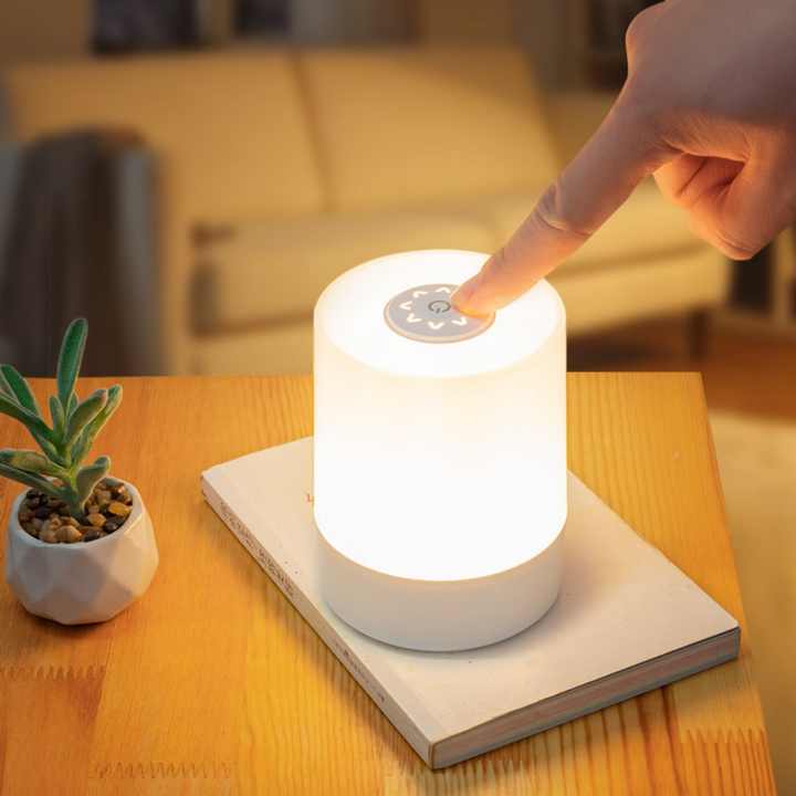 โคมไฟกลางคืนอัจฉริยะ ไฟสัมผัสแบบ USB ปรับความสว่างได้ โคมไฟกลางคืนแบบชาร์จไฟได้ โคมไฟสำหรับห้องเด็ก โคมไฟตั้งโต๊ะ