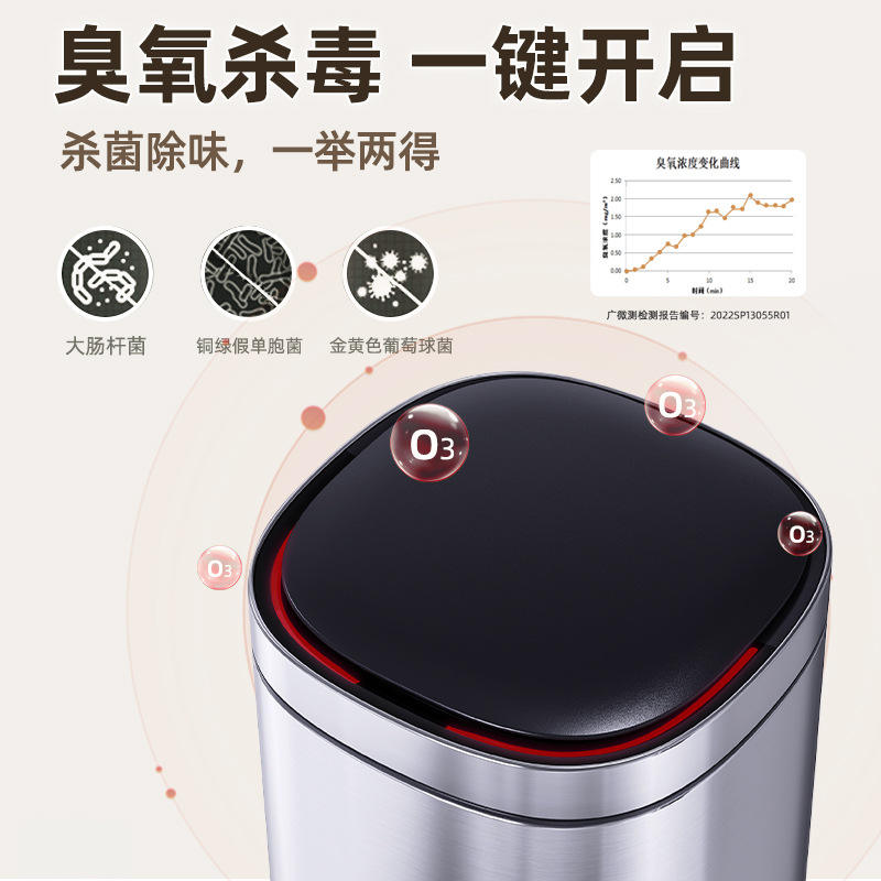 ถังขยะฆ่าเชื้อโอโซนอัจฉริยะ สแตนเลส พร้อมเซ็นเซอร์อัตโนมัติ สำหรับบ้าน ห้องครัว ห้องน้ำ รูปทรงสี่เหลี่ยมผืนผ้า น้ำหนัก 4 กก. ใช้พลังงานจากปลั๊กไฟ