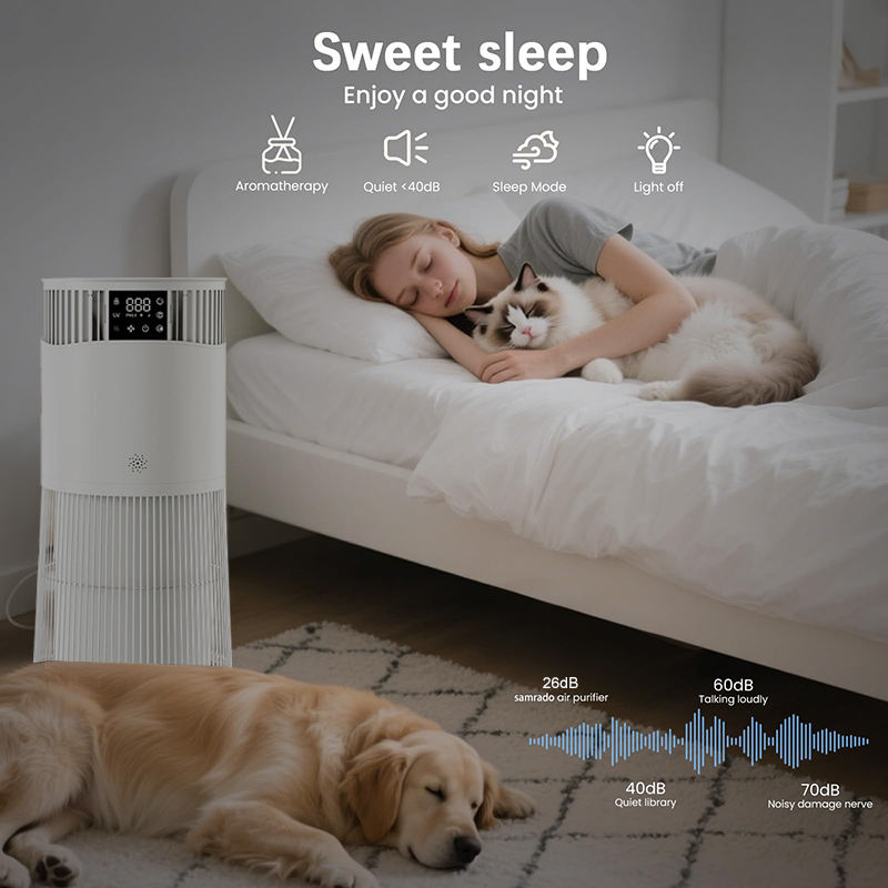 เครื่องฟอกอากาศสัตว์เลี้ยงอัจฉริยะสำหรับห้องพักขนาดใหญ่ถึง3000Ft เครื่องฟอกอากาศแบบมีไวไฟเครื่องตรวจคุณภาพละอองเรณู