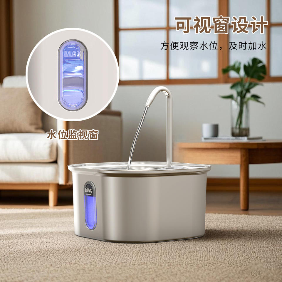 เครื่องให้น้ำสัตว์เลี้ยงอัจฉริยะ สแตนเลสสตีล แบบอัตโนมัติ สำหรับแมว ความจุขนาดใหญ่ ทำงานเงียบ พร้อมหน้าต่างแสดงระดับน้ำ
