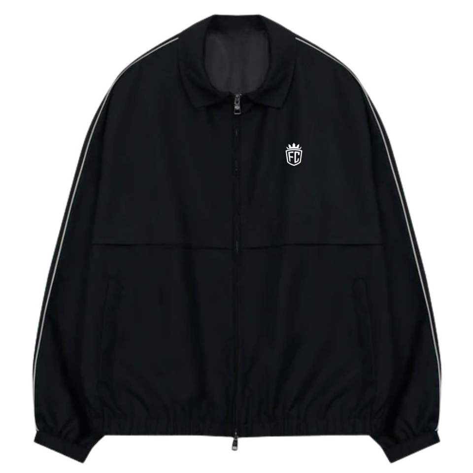 เซ็ตเสื้อแจ็กเก็ตและกางเกงวิ่งสำหรับผู้ชายแนวสตรีทแบบลำลองพร้อมซิปแจ็คเก็ตชุดวอร์มสีดำ