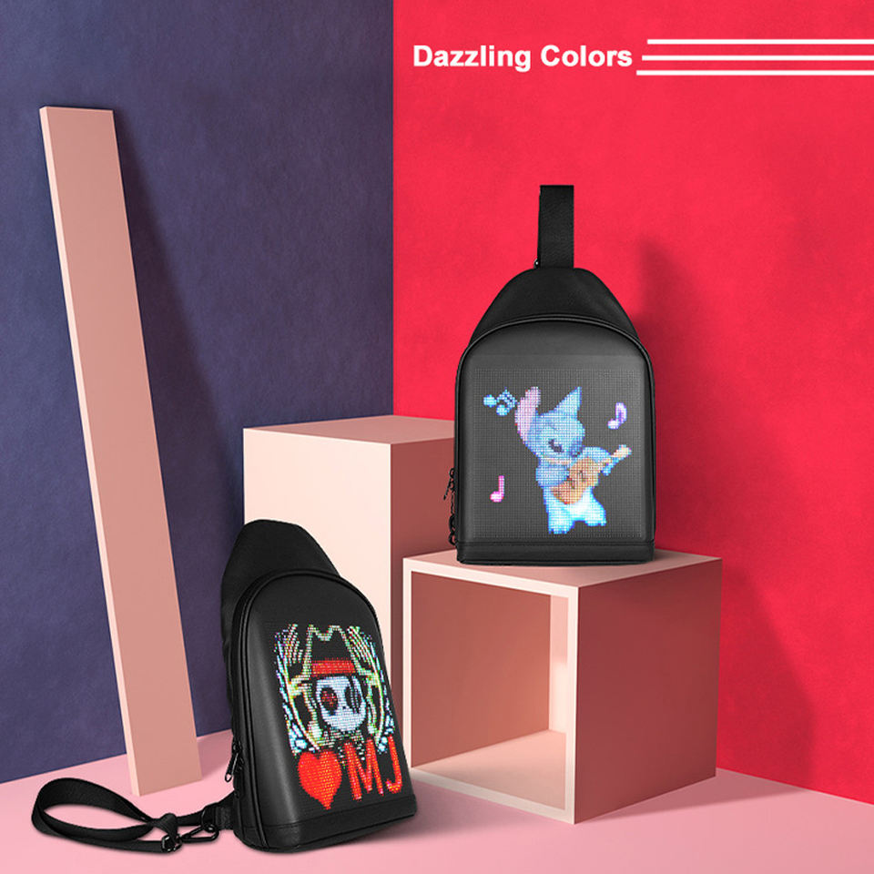 กระเป๋าเป้สะพายหลัง LED สมาร์ทพิกเซล RGB สีสันสดใส กระเป๋าคาดอกแบบ unisex กระเป๋าสะพายไหล่แฟชั่น กระเป๋า Messenger ทันสมัย พร้อมหน้าจอ LED