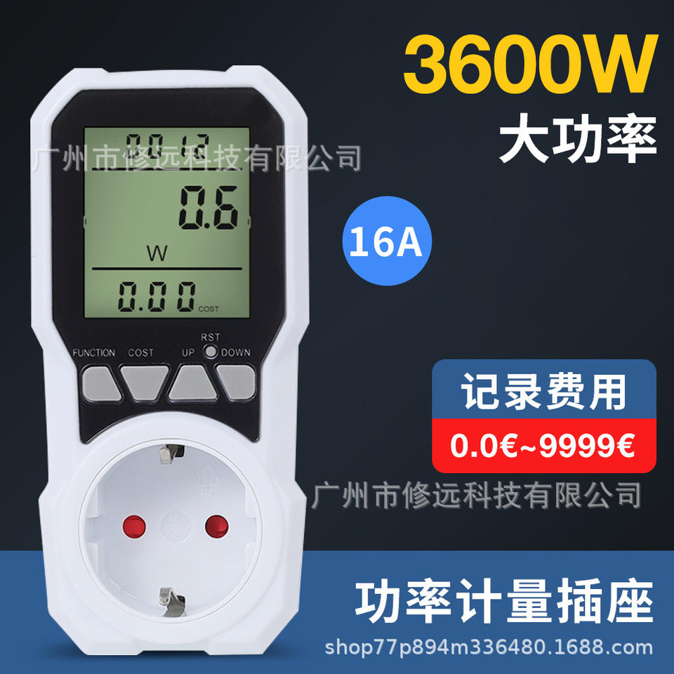เครื่องวัดพลังงานปลั๊ก EU 3600W 16A ช่องเสียบไฟอัจฉริยะพร้อมฟังก์ชันติดตามต้นทุน
