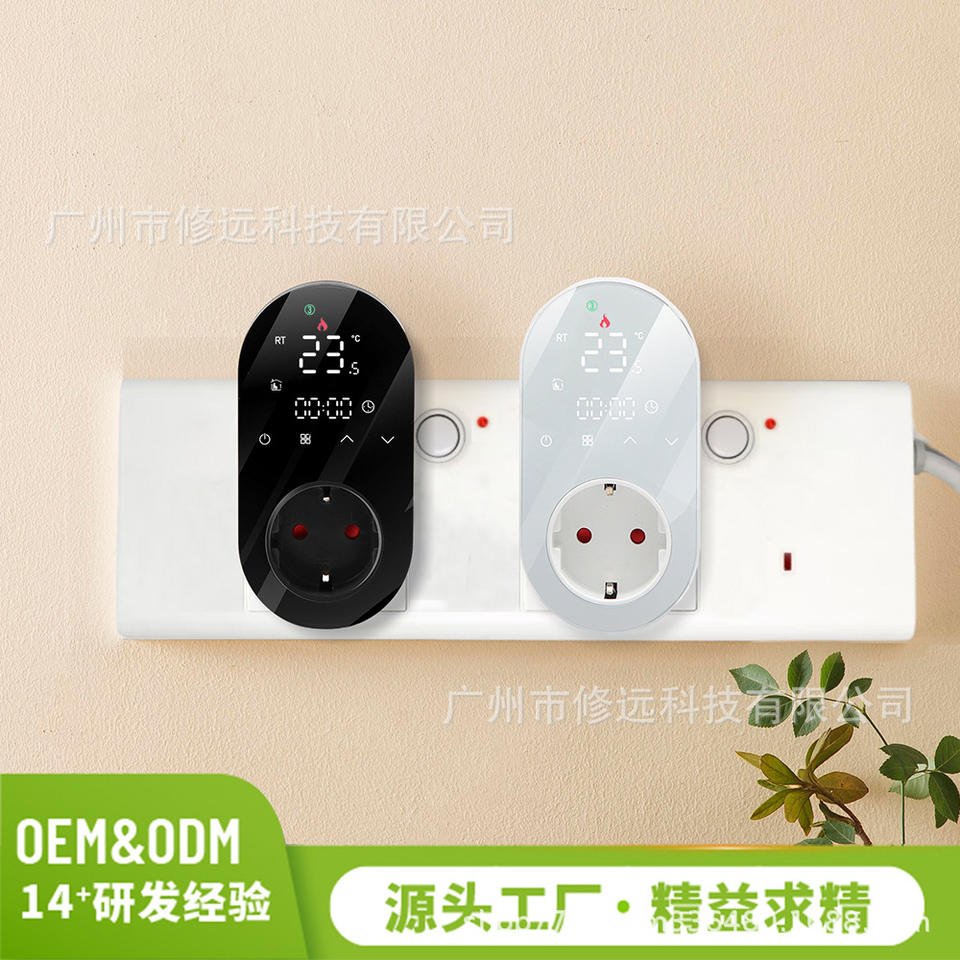 เทอร์โมสตัทปลั๊กไฟอัจฉริยะพร้อมจอแสดงผลดิจิตอล ตัวตั้งเวลาแบบหน้าจอสัมผัส ปลั๊ก EU ติดผนัง ใช้งานได้ทั่วไป