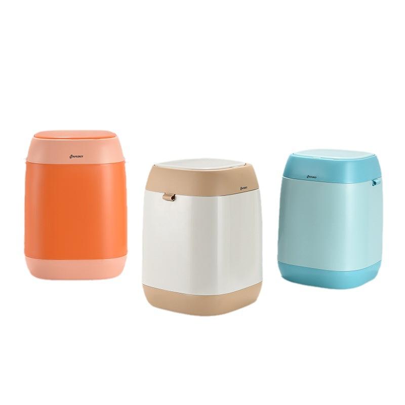 ถังขยะแบบกดอัจฉริยะทรงกระบอกความจุขนาดใหญ่ ที่ใส่ถุงอัตโนมัติ ใช้ภายในอาคาร สีอัลมอนด์ไรซ์