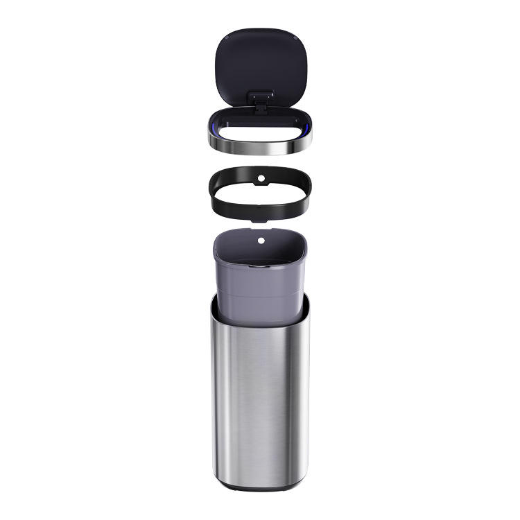 ถังขยะเซ็นเซอร์อัจฉริยะสแตนเลสสตีลเปิดฝาอัตโนมัติ ดีไซน์ทรงกลมสำหรับห้องครัวห้องนั่งเล่นห้องนอนการทำงานที่เงียบสงบ