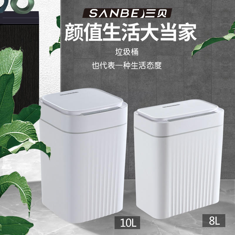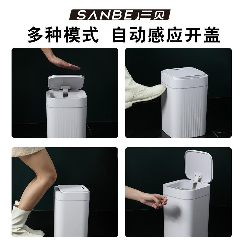 ถังขยะเซ็นเซอร์อัจฉริยะพร้อมฝาปิด 1.2 กก. แบตเตอรี่แบบชาร์จไฟได้ในตัวสำหรับห้องน้ำห้องครัวห้องนอนใช้ในบ้าน